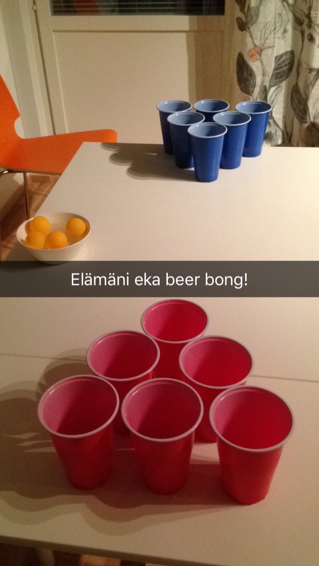 Kävin kaverin luona Tampereella ja pelasin ekaa kertaa elämässäni beer bongia ja voitinkin! |